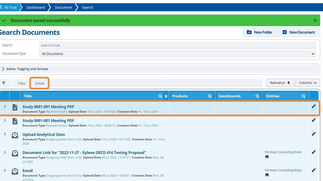 5. 🥳 Email has been saved as a document and can be found in the relevant folder.¶