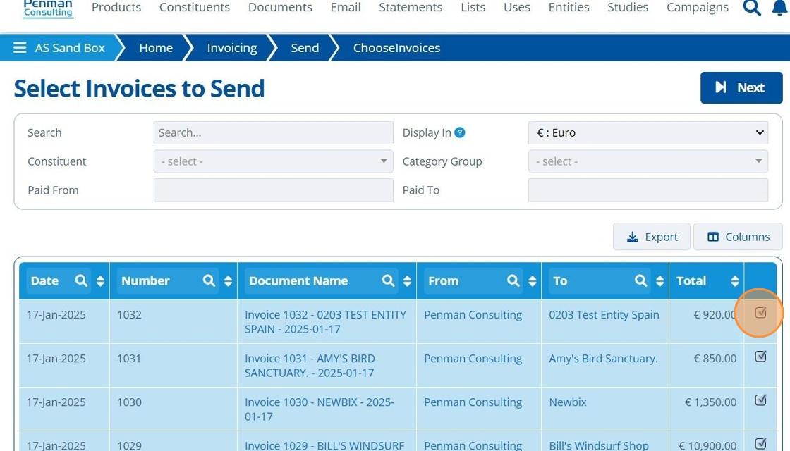 👆 Hold Ctrl and tick boxes to select multiple invoices that are not adjacent in the list.