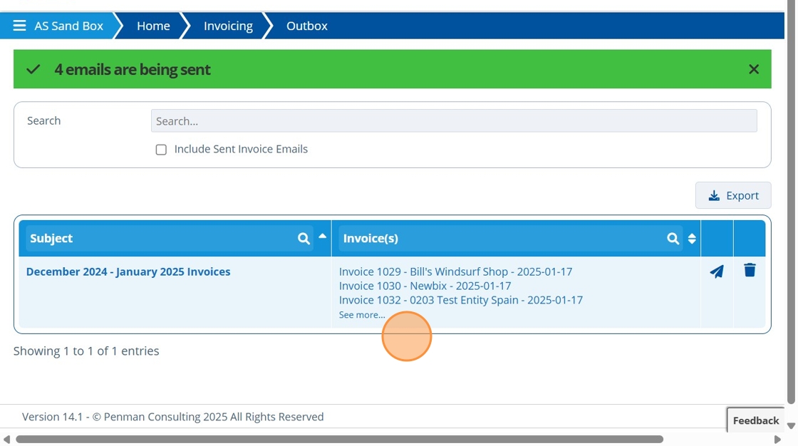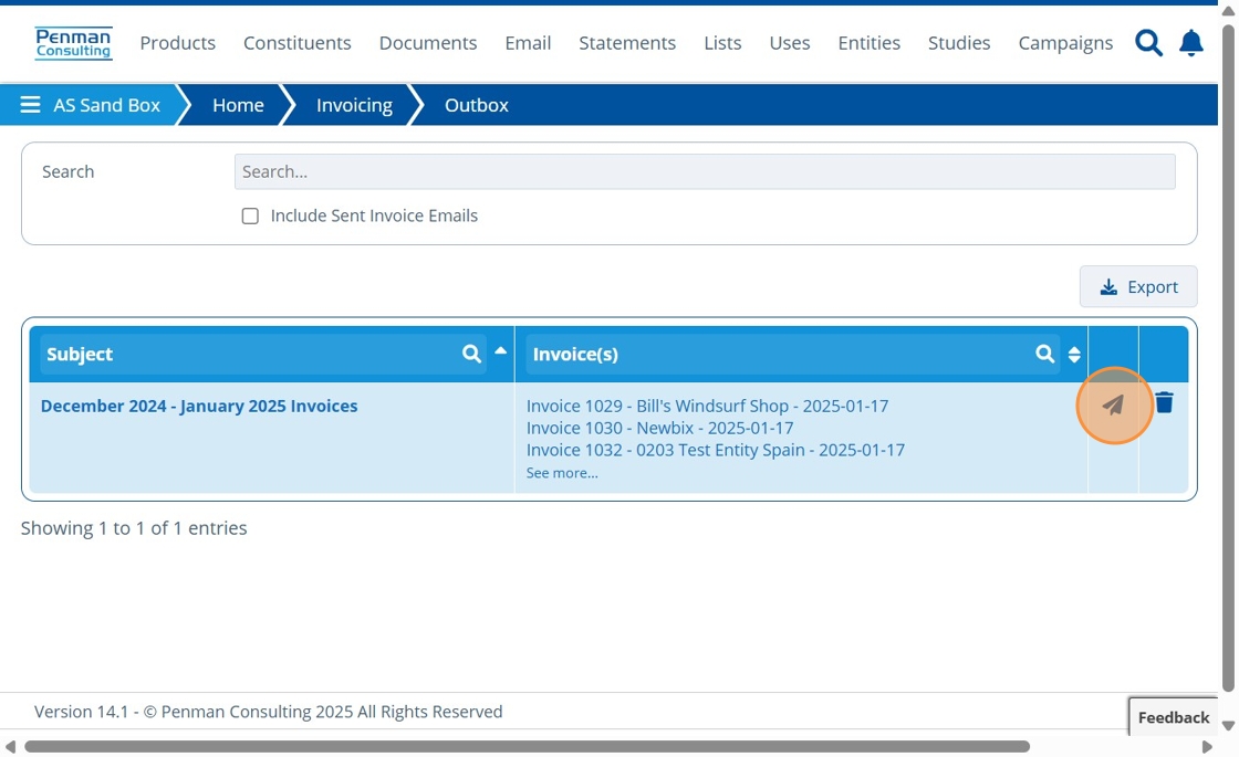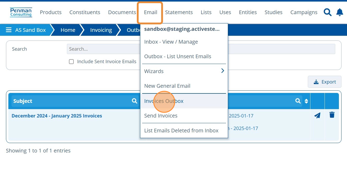13. After the email has been saved as a draft and reviewed, navigate to the "Invoices Outbox".¶