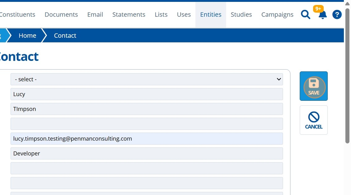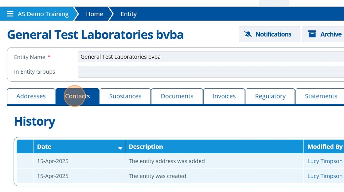 Note that edits made to the entity will be stored in the Entity records "History" tab.