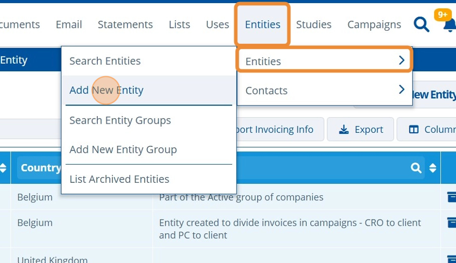 1. 👆 Navigate to Entities 👉 Add New Entity.¶