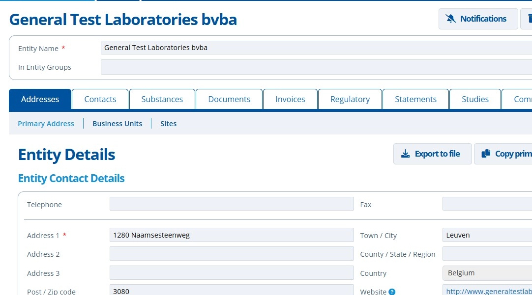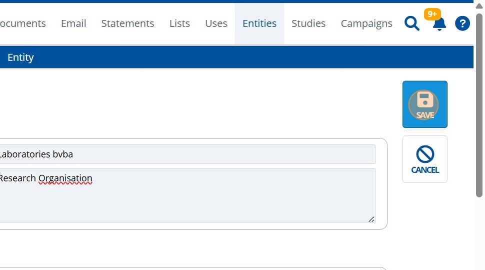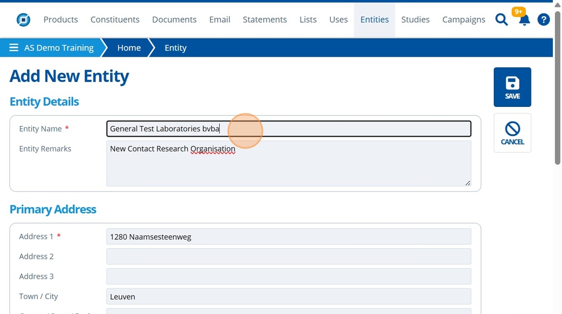 "Entities" in Active Steward are used to represent companies. They include addresses and help organise contacts.