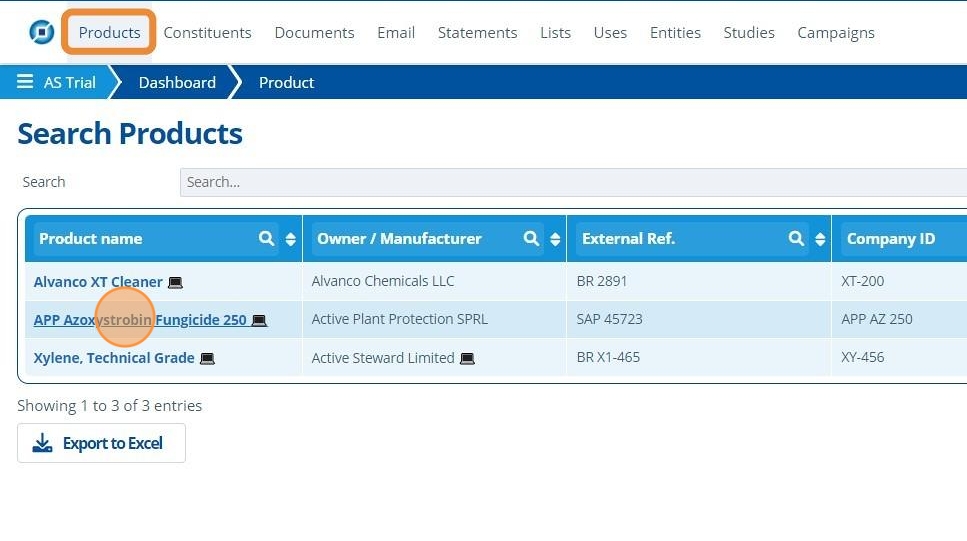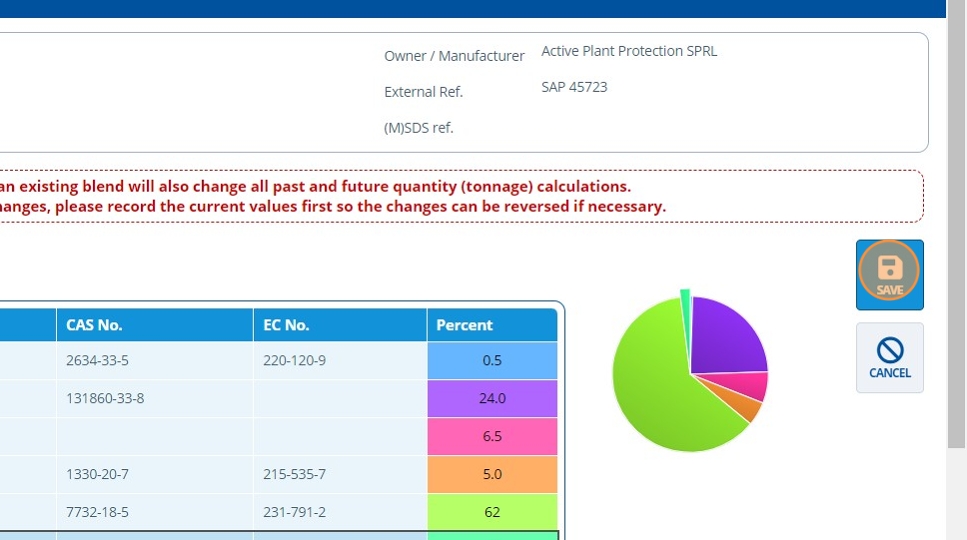 Product formulation can be imported / exported in the Bulk Data screen. The export sheet includes data on products where it lists the constituents/sub-constituents that make up the product, along with their percentages. Products are listed alongside product owners/ manufacturers.