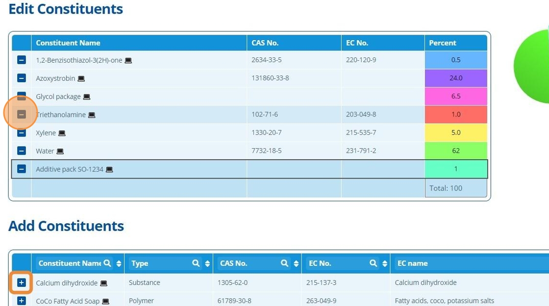 4. 👆 Click the plus icon to add constituents to the formulation.¶