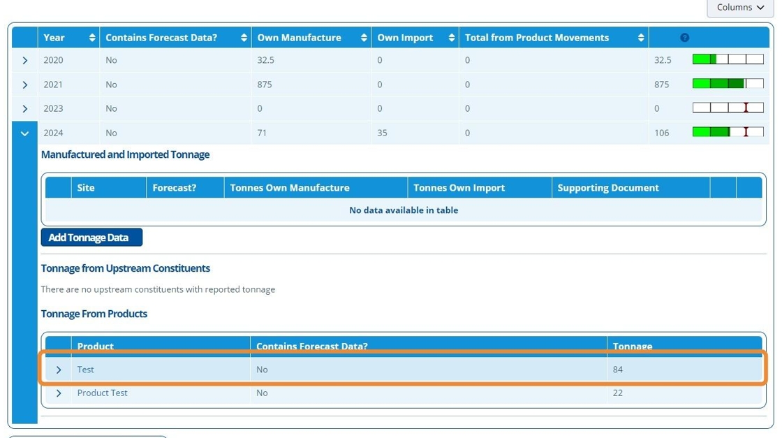10. 🥳 The tonnage data for the constituents is being pulled from the product's tonnage.¶