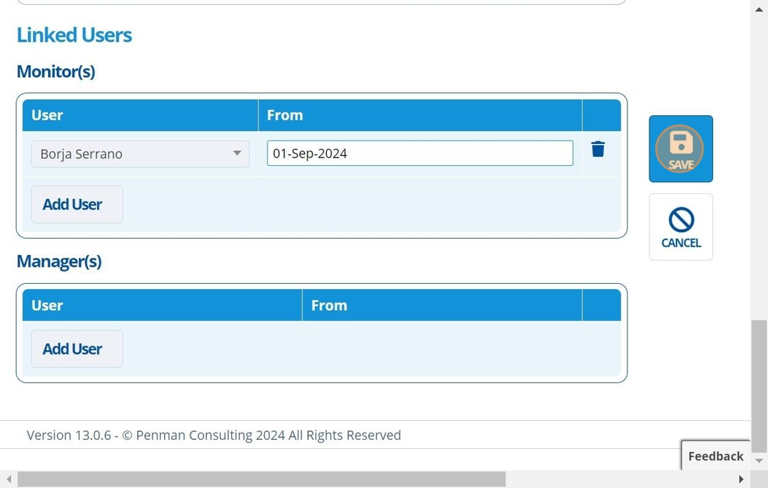 11. 👆 Click "Add User" in the "Monitor(s)/Manager(s)" table to assign a study monitor/manager. Or, assign users after study creation by following: How to Assign Study Monitors / Managers to a Study.¶