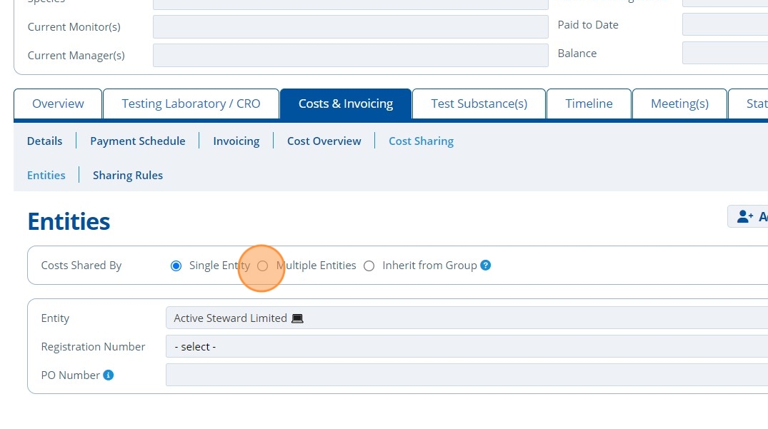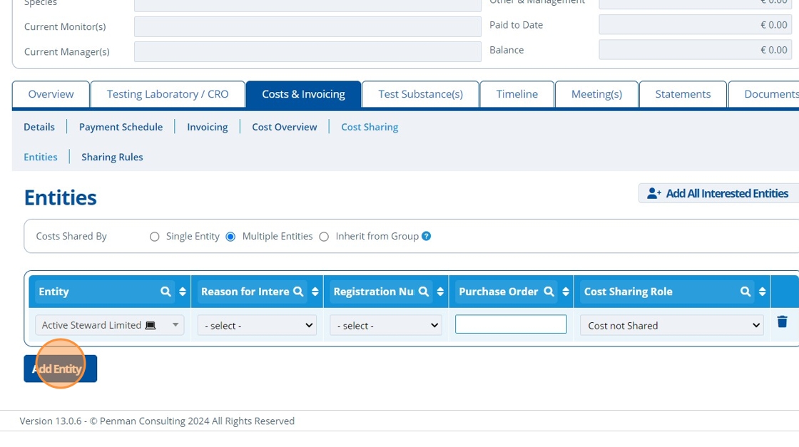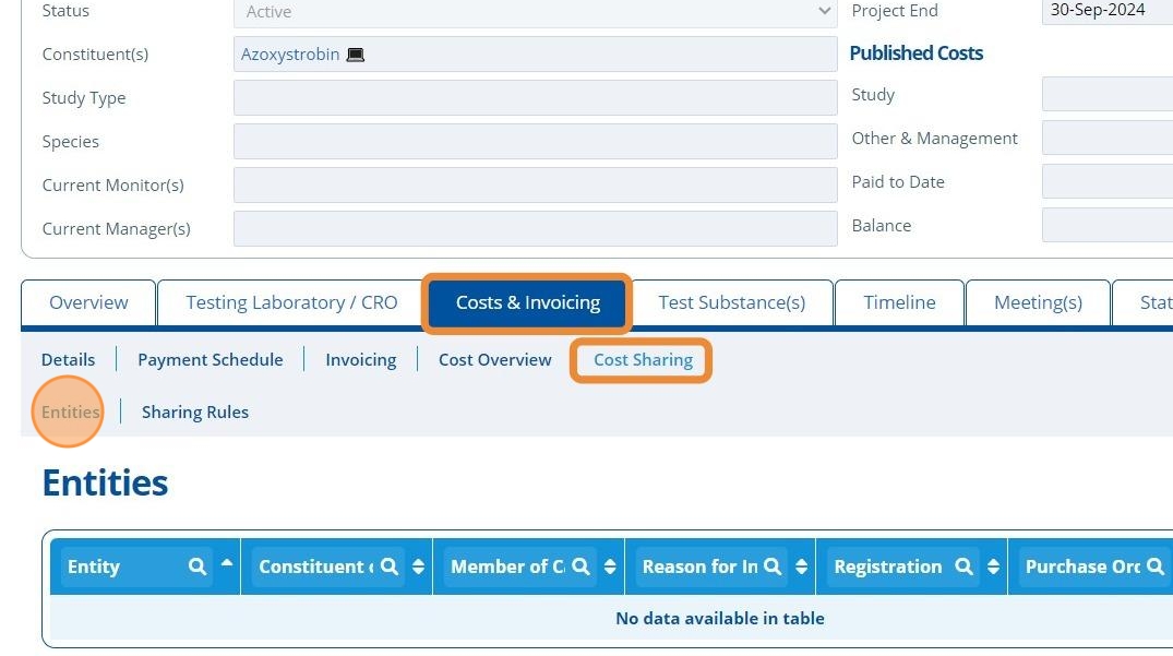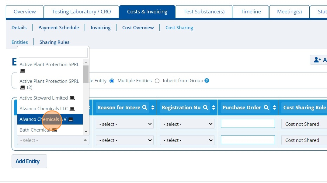 1. 👆 Navigate to "Costs & Invoicing" 👉 "Cost Sharing" 👉 "Entities".¶