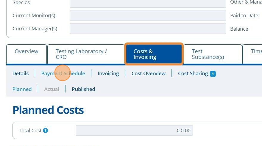 2. 👆 Navigate to the Costs & Invoicing tab 👉 Payment Schedule.¶