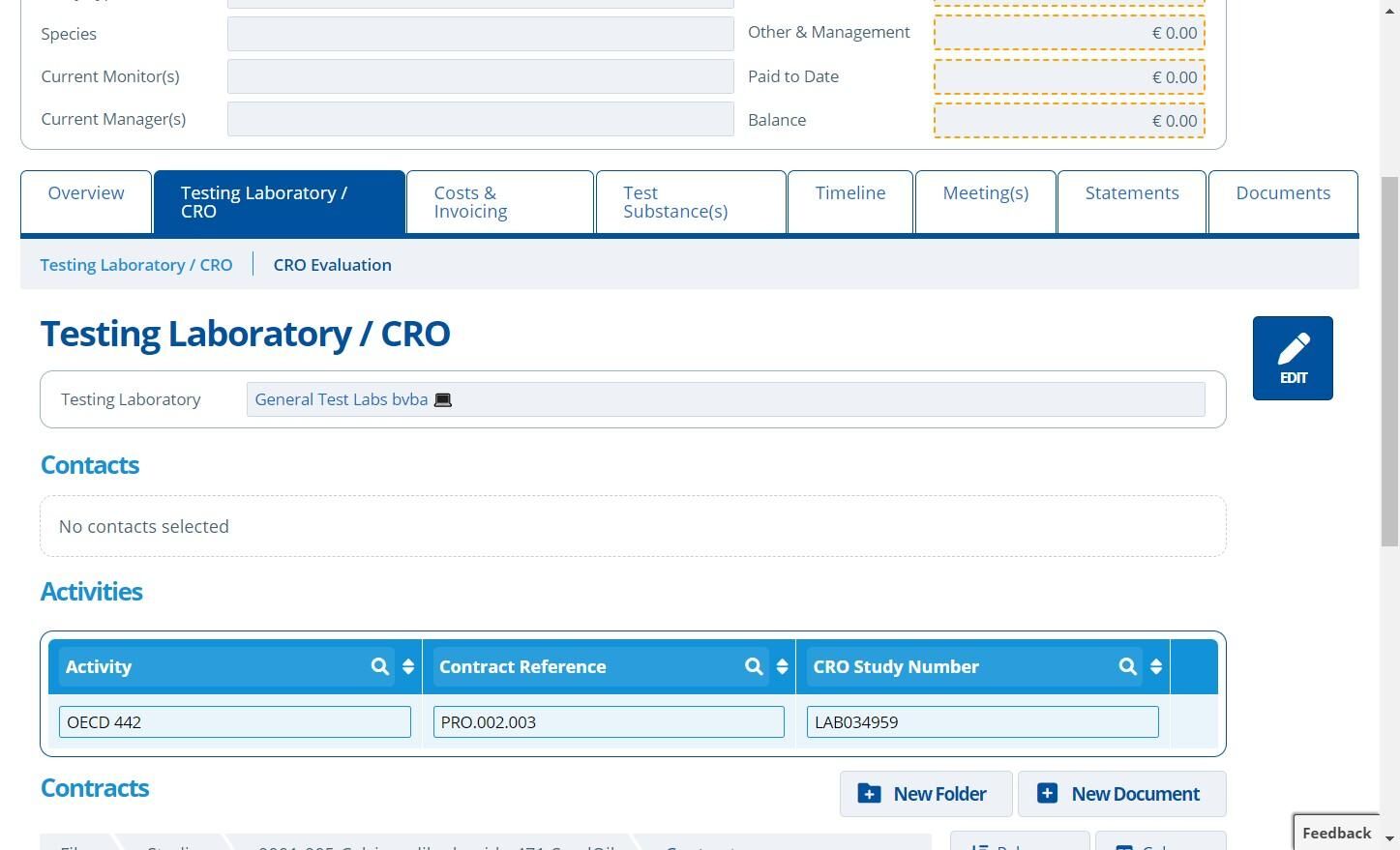 Ensure the study has "Activities" populated in the "Testing Laboratory / CRO" tab. This is so costs can be allocated against each study activity (How to Create Study Activities and Set up the Timeline).