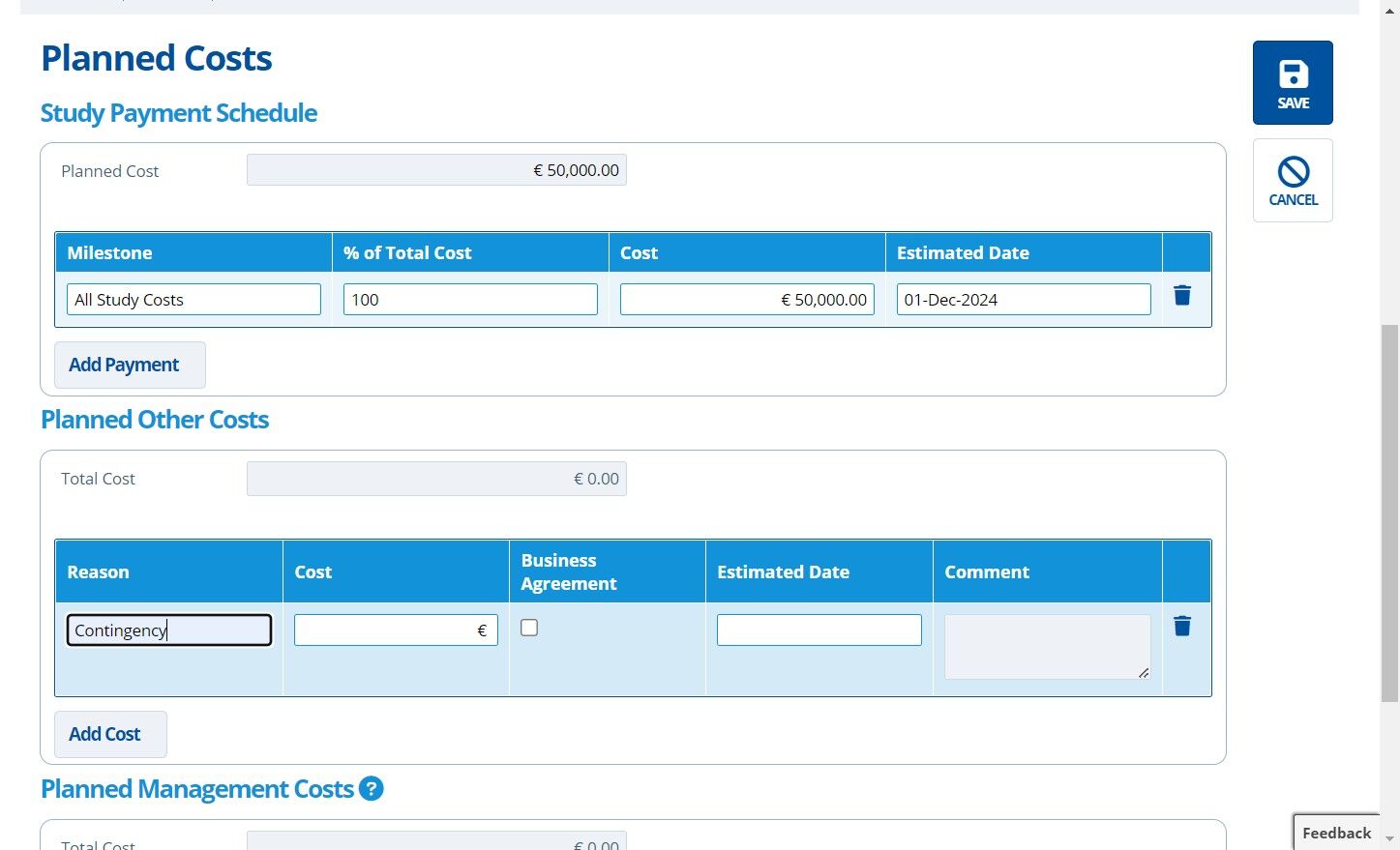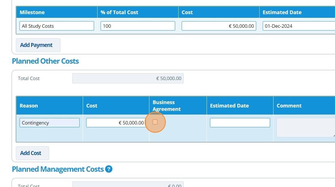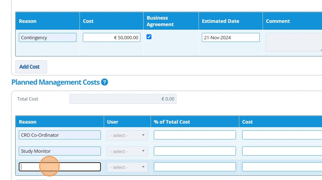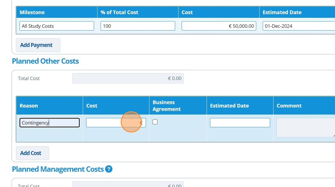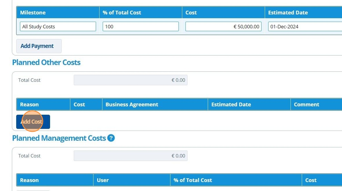 12. 👆 Click "Add Cost" in the "Planned Management Costs" section.¶