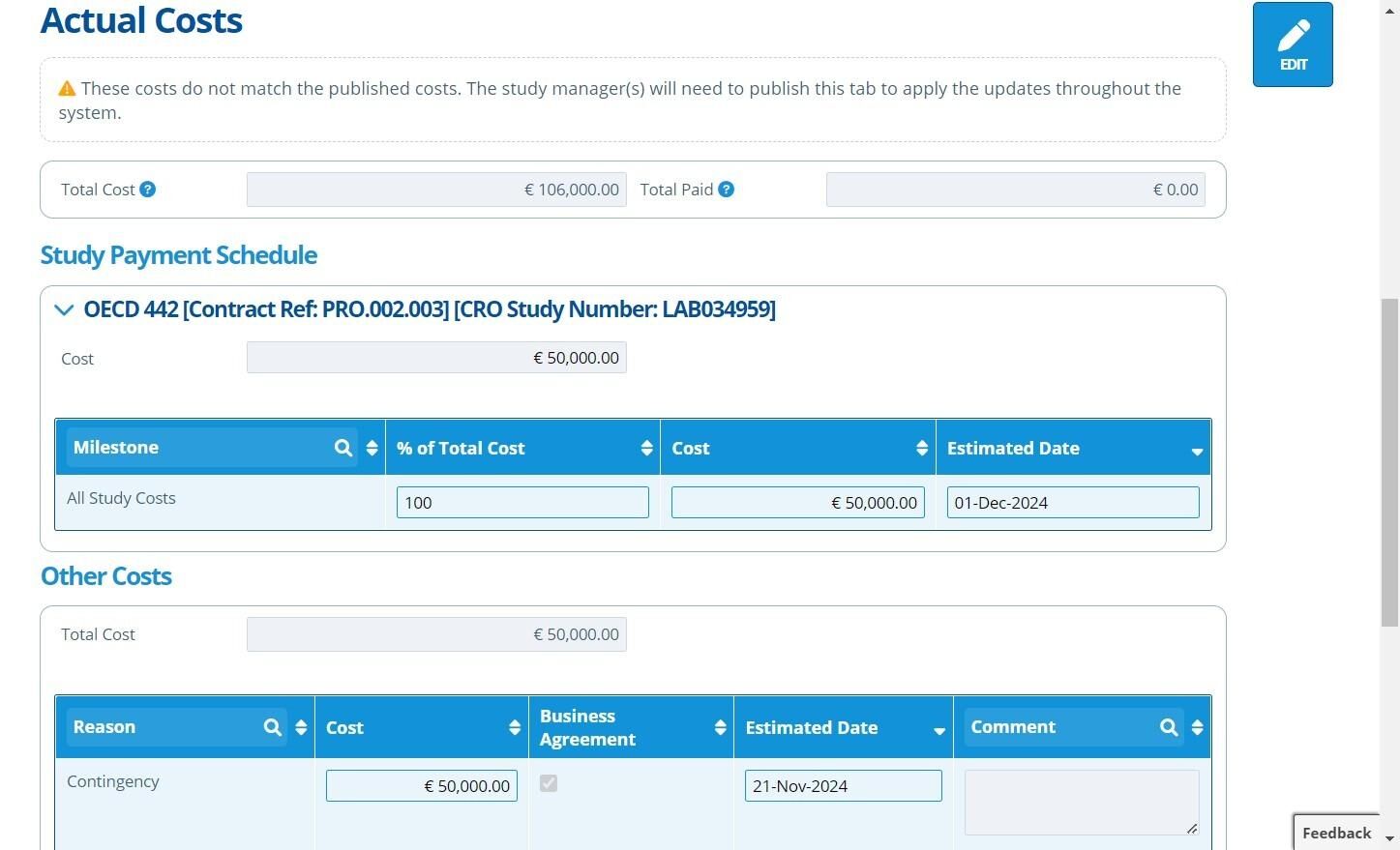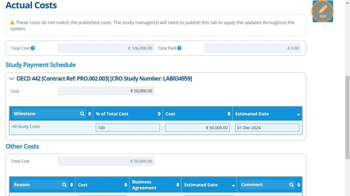 21. 👆 Click "EDIT" to amend the costs further.¶