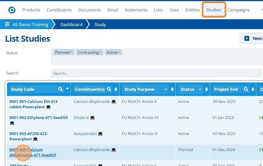 1. 👆 Navigate to Studies 👉 Click the study of interest from the list.¶