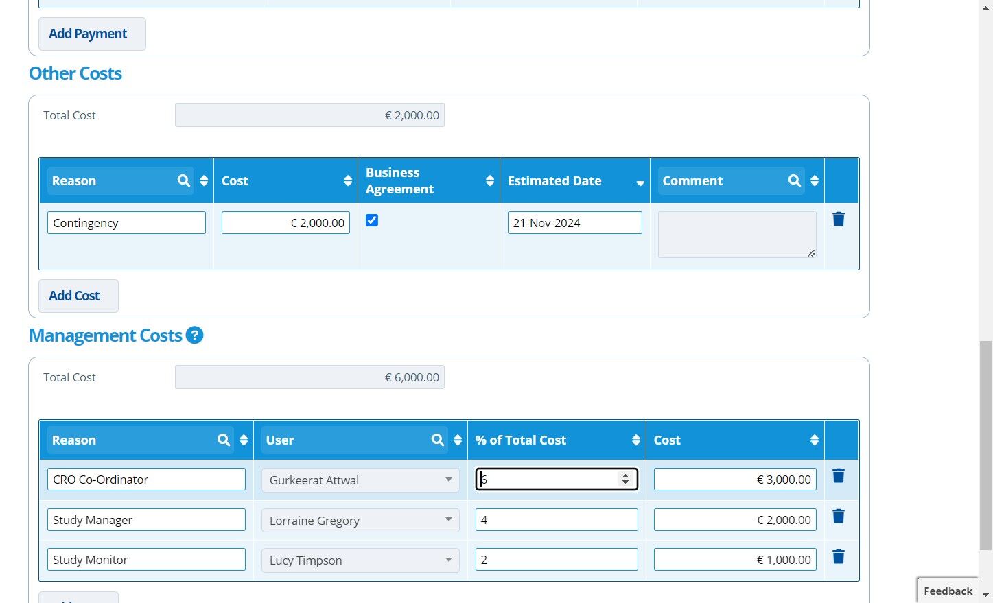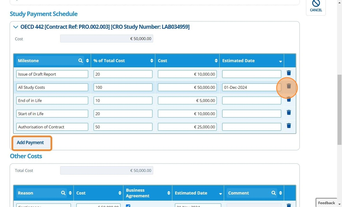 23. ✍️ Amend the "Management Costs" milestone payments if required.¶
