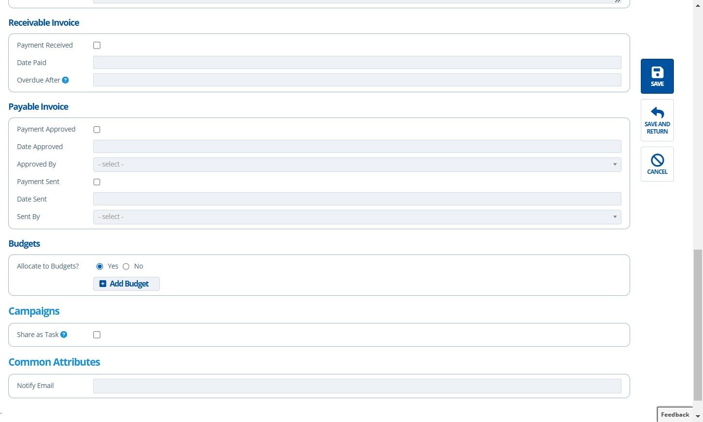13. 👆 Click the "Yes" field in the "Budgets" section.¶