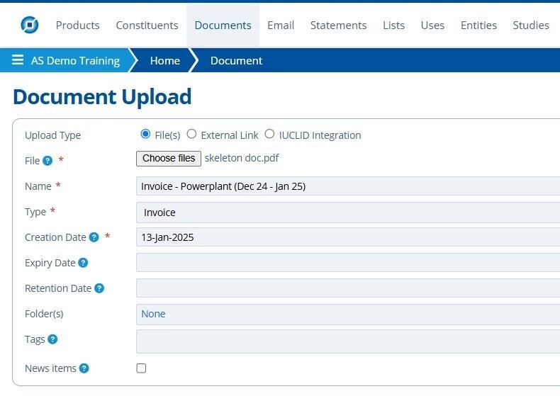 11. 📤 Upload a document and set the type as "Invoice".¶
