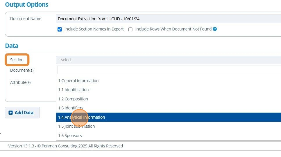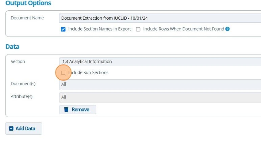 9. 👆 Optionally, choose the section to extract. Only data from documents inside the section will be exported. To extract from multiple sections, click the "Add Data" button.¶