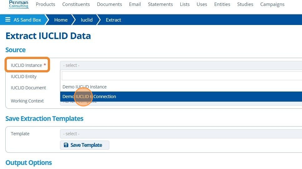 6. The IUCLID Document field will load/list all records (of the selected entity) from the selected IUCLID Instance.¶