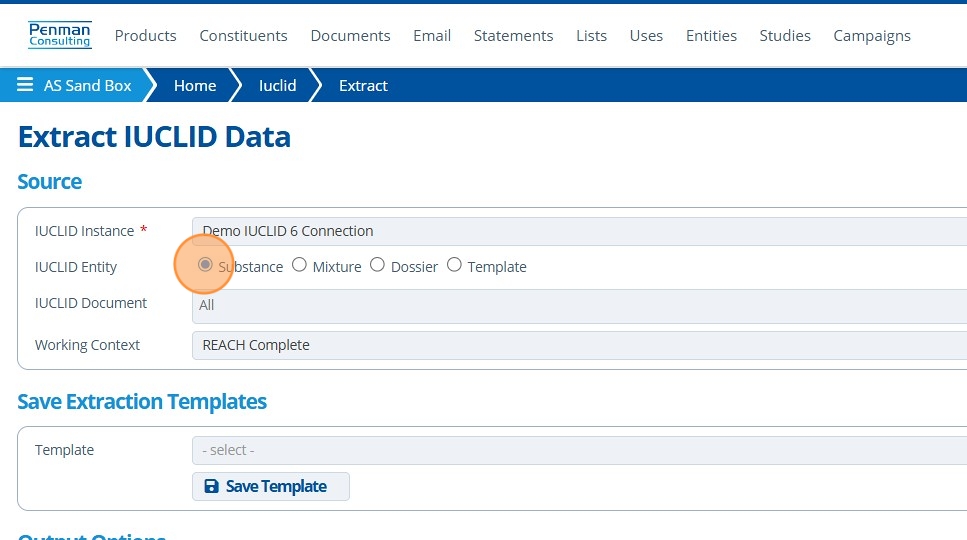 5. 👆 Select the IUCLID Entity to extract.¶
